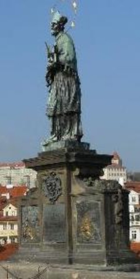 Zur Geschichte von Johannes von Nepomuk:Die Überlieferung berichtet, dass die Königin Johannes zu ihrem Beichtvater wählte. Wenzel wollte nun Johannes zwingen, das Beichtgeheimnis zu brechen, aber der weigerte sich, wurde deshalb gefoltert und in die Moldau geworfen. Durch ein Wunder wurde der Tote geborgen: nach der einen Version trocknete die Moldau aus, so dass man seine Leiche fand. Nach einer anderen Version hatte die Königin eine Erscheinung von fünf Sternen - sie stehen für die fünf Buchstaben von tacui, ich habe geschwiegen - die den Fundort offenbarten. So konnte Johannes beigesetzt werden. Eine Marmorplatte an der Karlsbrücke in Prag zeigt heute den angeblichen Fundort.